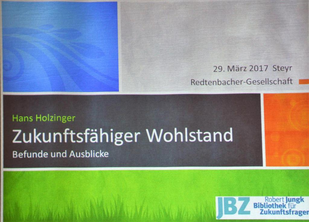 Redtenbacher Vortrag: “Zukunftsfähiger Wohlstand” am 29. März 2017, Stadtbücherei Steyr