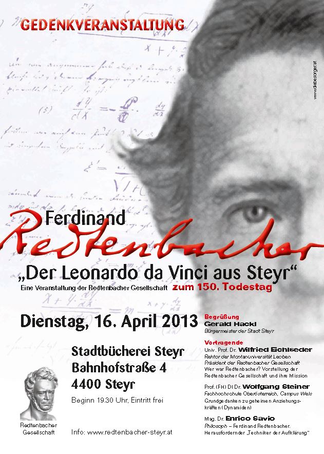 - Zum 150. Todestag am 16. April 2013: “Ferdinand Redtenbacher. Der Leonardo da Vinci aus Steyr”